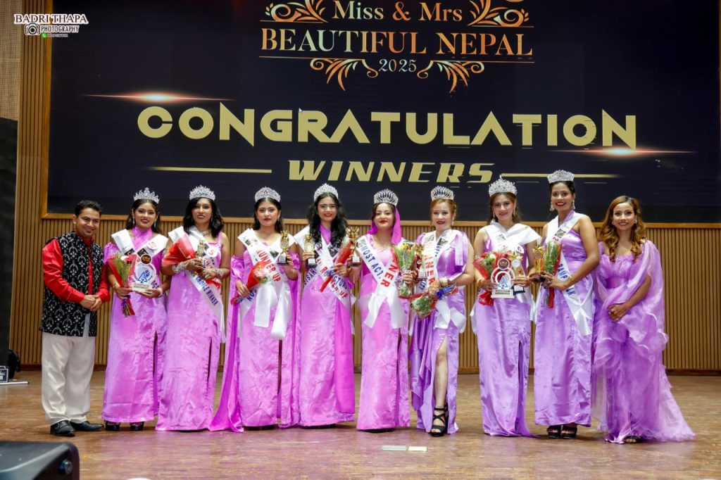 यस वर्ष मिसेस व्युटिफुल नेपाल–२०२५ को उपाधि प्रिया कार्कीले प्राप्त गर्न सफल भइन् भने मिस व्युटिफुल नेपाल–२०२५ को विजेता प्रसुन्ना सेन्चुरी घोषित भइन्।