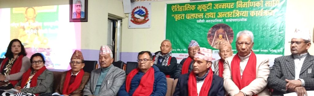 प्रतिष्ठानको माग अनुसार, शहरी विकास तथा भवन कार्यालय, काभ्रेपलाञ्चोकको सहभागितामा पनौती नगरपालिकाको व्यवस्थापन सहयोगमा जनप्रतिनिधिहरू, इतिहासविद्हरू, संस्कृतिविद्हरू, संस्कृति पर्यटन तथा नागरिक उड्डयन मन्त्रालयका अधिकारीेहरू, भौतिक पूर्वाधार विकास मन्त्रालयका सम्बद्ध निकायहरू, सम्बन्धित विज्ञ तथा पत्रकारहरूबीच शुक्रबार एक बृहत छलफल र गोष्ठी आयोजना गरिएको हो । कार्यक्रममा पनौती नगरपालिकाका प्रमुख रामशरण भण्डारीले स्वागत गर्दै पनौती ऐतिहासिक शहर भएकाले यहाँ राष्ट्रिय विभूति भृकुटीको जन्मघर तथा भृकुटी पार्क निर्माण हुनु निकै गौरवको कुरा भएको बताउनुभयो । कार्यक्रममा भृकुटी स्मृति प्रतिष्ठानका अध्यक्ष विश्व उलकले भृकुटीको जीवनी र यससँग सम्बन्धित ऐतिहासिक प्रमाणहरुका बारेमा उल्लेख गर्नुभयो ।