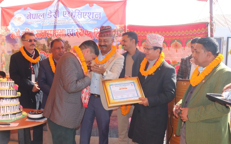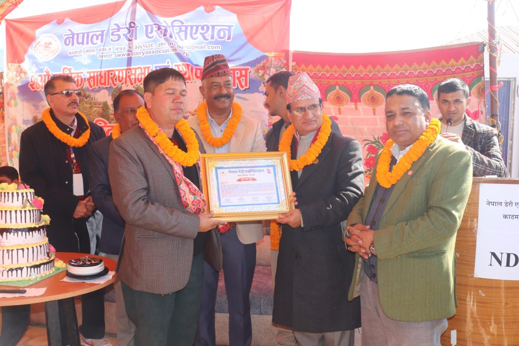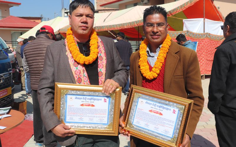 बागमती प्रदेशका माननीय कृषि तथा पशुपन्छी विकास मन्त्री मधुसूदन पौडेल, एसोसिएसनका अध्यक्ष प्रल्हाद दाहाल, उद्योग बाणिज्य संघका केन्द्रिय उपाध्यक्ष सुरकृष्ण बैद्यलगायतले सो सम्मान पत्रिकाका प्रकाशक÷प्रधान सम्पादक नवराज बजगाईलाई प्रदान गरेका हुन । पत्रिकाले नियमित स्तम्भकै रुपमा कृषि डायरी र पशु स्वास्थ्य डायरी प्रकाशनका अलावा यो क्षेत्रका विज्ञहरुको सन्देश, बिचार र जानकारीहरुलाई प्राथमिकताका प्रकाशन गरी दुरदराजसम्म पु¥याउन गरेको योगदानको उच्च सम्मान गर्दै नेपाल डेरी एसोसिएसनको नवौँ राष्ट्रिय महाधिवेशन तथा २७औं वार्षिक साधारण सभाको अवसरमा संस्थागत सम्मान गरिएको हो ।