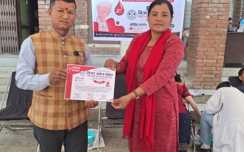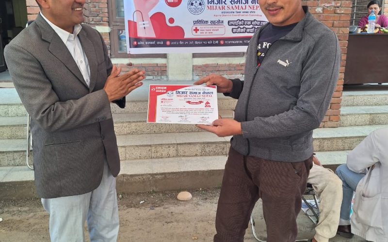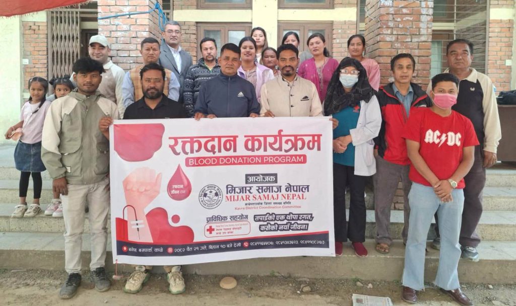 रक्तदान, जीवन दान भन्दै मिजार समाज नेपाल काभ्रेपलाञ्चोक जिल्ला समन्वय समितिले शनिबार बनेपा बसपार्कमा रक्तदान कार्यक्रम गरेको छ ।