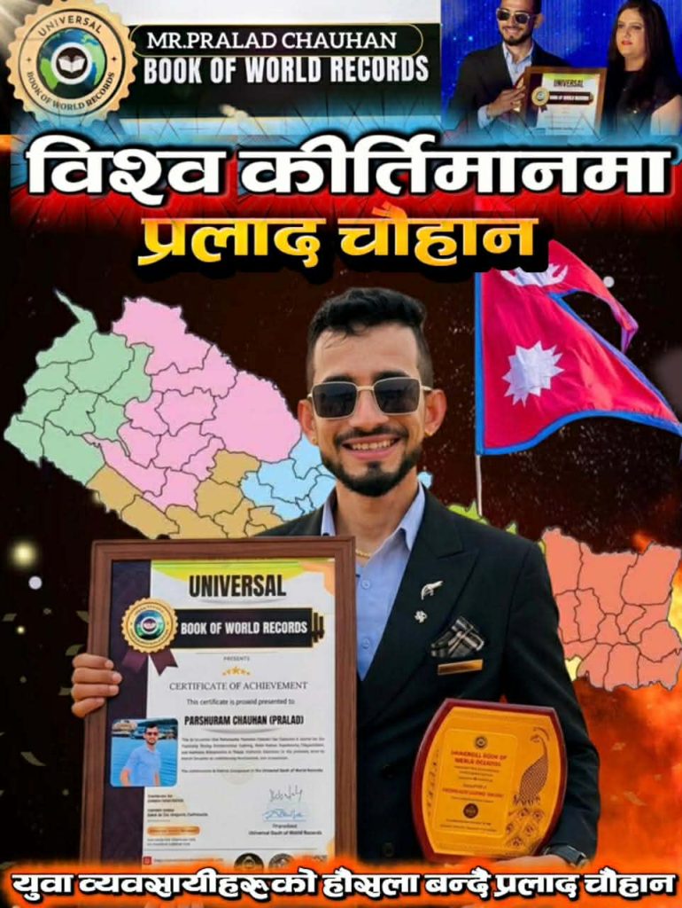 प्रभावशाली युवा उद्यमी परशुराम चौहान ‘प्रलाद’ अन्तर्राष्ट्रिय मञ्चमा विश्व कीर्तिमानसँग जोडिएका छन्। चौहानलाई अन्तर्राष्ट्रिय स्तरको ‘युनिभर्सल बुक अफ वल्र्ड रेकर्ड’द्वारा सम्मानित गरिएको हो। भारतको गोवास्थित बागा समुद्र तटमा आयोजित एक अन्तर्राष्ट्रिय समारोहमा चौहानलाई सम्मान गरिएको थियमे।